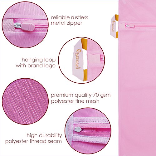 - RELIABLE ZIPPER AND SAFE CLOSURE: Queensell lingerie mesh laundry bags come with the most reliable and smooth zipper with large crystal tab for easy grabbing and rubber closure that keeps the laundry bag in locked state, ensures a quiet wash