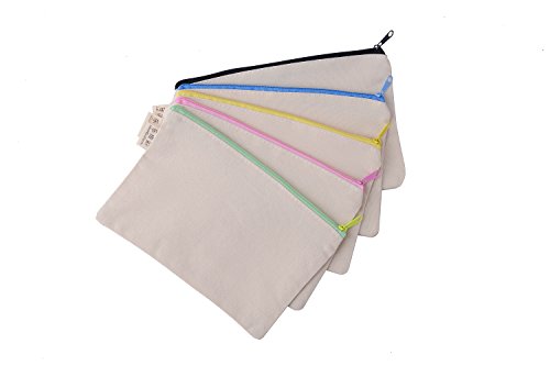 Large Blank Canvas Pen Pencil Case Stationery Pouch Coin bag Cosmetic Bags, Set of 5