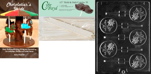 Cybrtrayd 'Spider in Web Lolly' Halloween Chocolate Candy Mold with 50 4.5-Inch Lollipop Sticks and Chocolatier's Guide