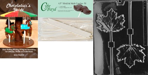 Cybrtrayd 'Large Maple Leaf Lolly' Fruits and Vegetables Chocolate Candy Mold with 50 4.5-Inch Lollipop Sticks and Chocolatier's Guide