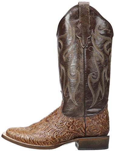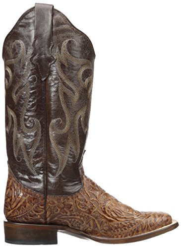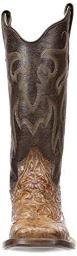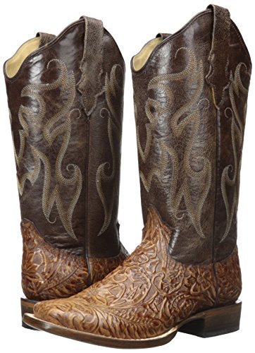 Product DescriptionBrown faux hand too led vamp with a vintage shaft and wide sq toe. double welt stitch with a walking heel and 12 inch0