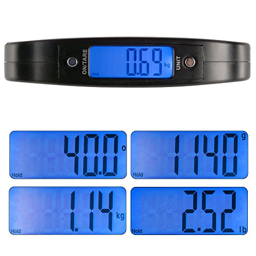 Studio : XCSOURCE Publisher : XCSOURCE Binding : Electronics Product Description Features: This luggage scale is a good weighing precaution, can help you easily avoid airport excess baggage charge. Adopting high precision sensor, to guarantee you an accurate and precise weighing session. Efficient and comfortable ergonomic design to provide a comfortable holding. With a strong plastic hooks, firm and durable. Accurate and easy to read the digital display with blue backlight, convenient to use at night. Featuring 4 different weight modes: g, kg, lb, oz, for easy weight translations. And maximum capacity is 40kg / 88lb. With sound function for indicating overload, low battery and turn on. Operated by a 2x AAA battery (Not included), with Auto power off function to preserve battery life.