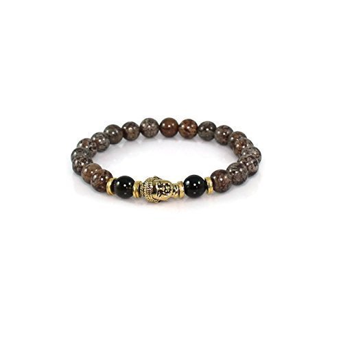 -. Title : Beaded Buddha Garnet and Brown Jasper Mala Bracelet