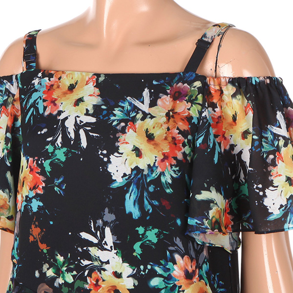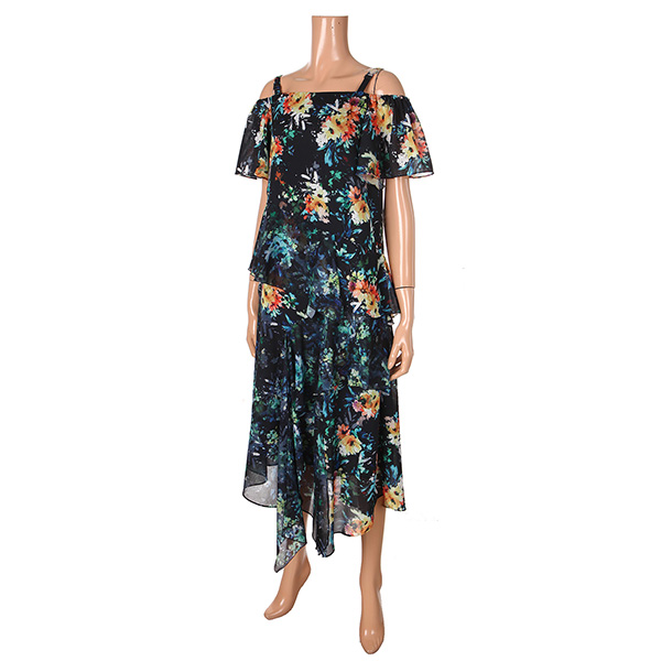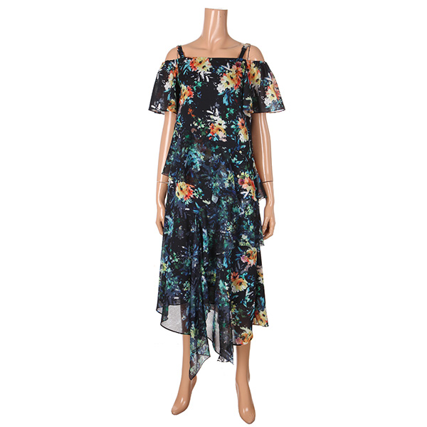 다양한 컬러감의 플라워프린팅이 있는 오프숄더 롱원피스입니다.