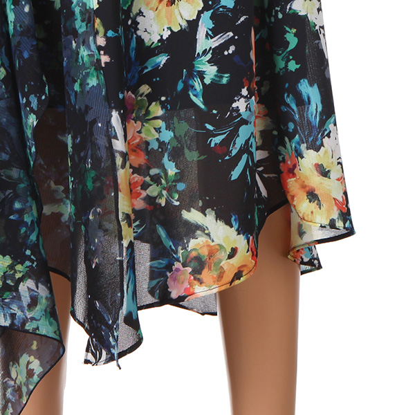 소매 프릴 디자인으로 팔뚝 커버가 용이하며, 밑단과 전체 언발란스 디테일로 멋스럽습니다.