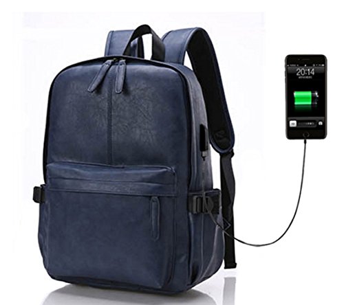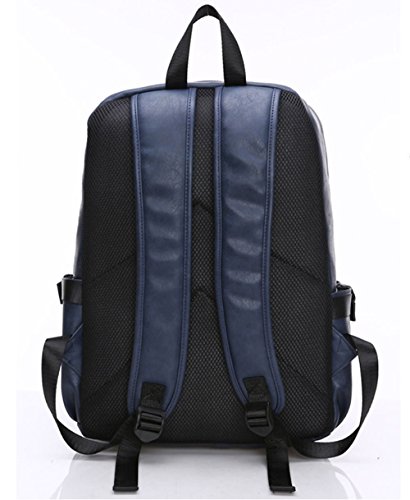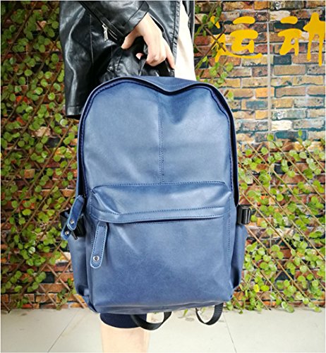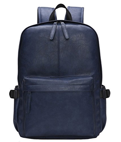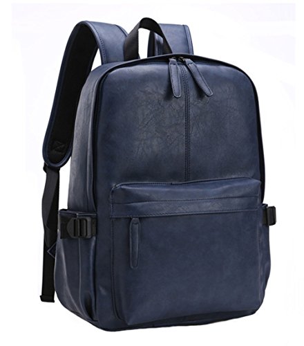 Esther Beauty Men PU Leather Laptop Computer Backpack Student Casual Travel Bag Daypack(Blue)