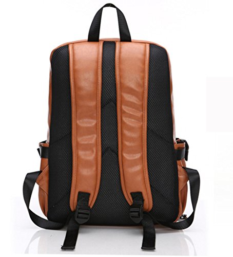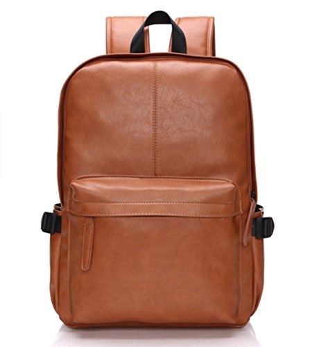 Esther Beauty Men PU Leather Laptop Computer Backpack Student Casual Travel Bag Daypack(Brown)