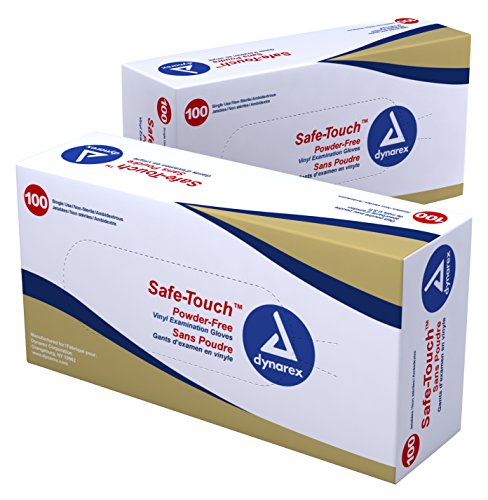 Dynarex 2613 Safe-Touch Vinyl Exam Glove, Powder Free, Large (Pack of 100)