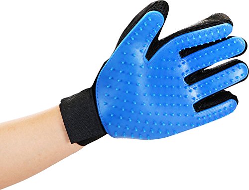 -. Feature : Slip-on grooming glove with adjustable wrist strap provides a comfortable fit; removes loose pet hair, dirt and tangles so that no fur goes flying / This light weight glove is made with a silicone base, with 180 silicone grooming tips / The rubber tips provide a gentle and relaxing massage; the five finger design allows you to groom hard-to-reach areas / The glove's velour side easily cleans fur from furniture and carpets / This grooming glove caters well to short, medium and long coat fur; Perfect for sensitive and young pets