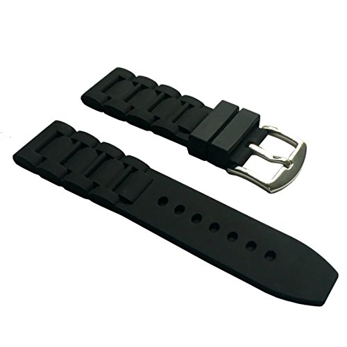 -. Title : 24mm Black Authentic Silicone Rubber Watch Strap Band Stainless Steel Buckle for Fossil Watch