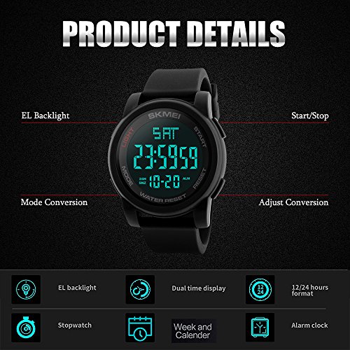 * LED digital military watch designed for men.