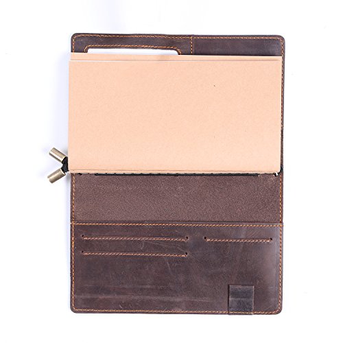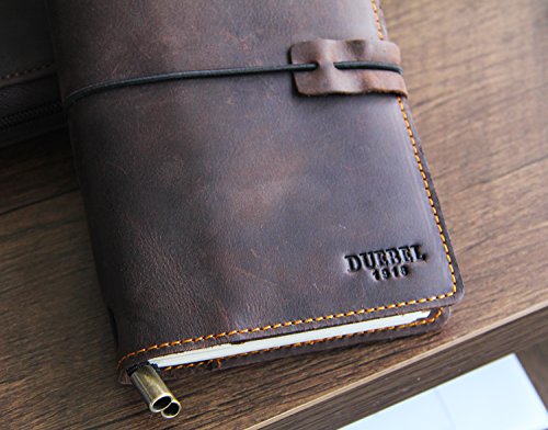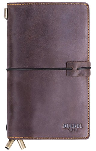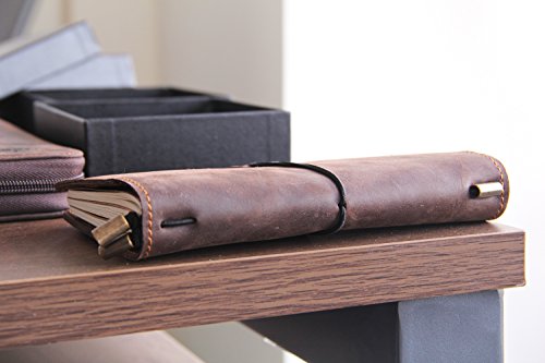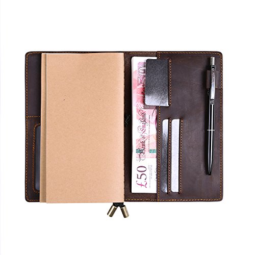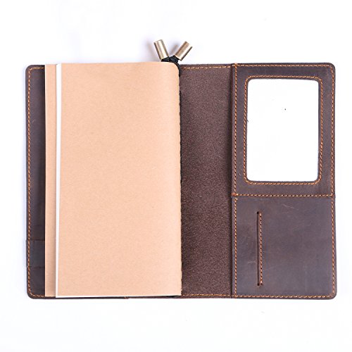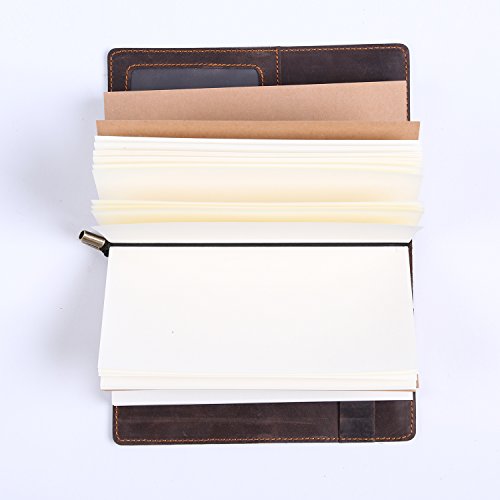 Refillable Leather Journal Travelers Gunuine Leather Long Wallet with 4 card slot + ID Window + Bill Compartment + Phone Compartment + Pen Holder + 3 Papers Notes Sketching Drawing
