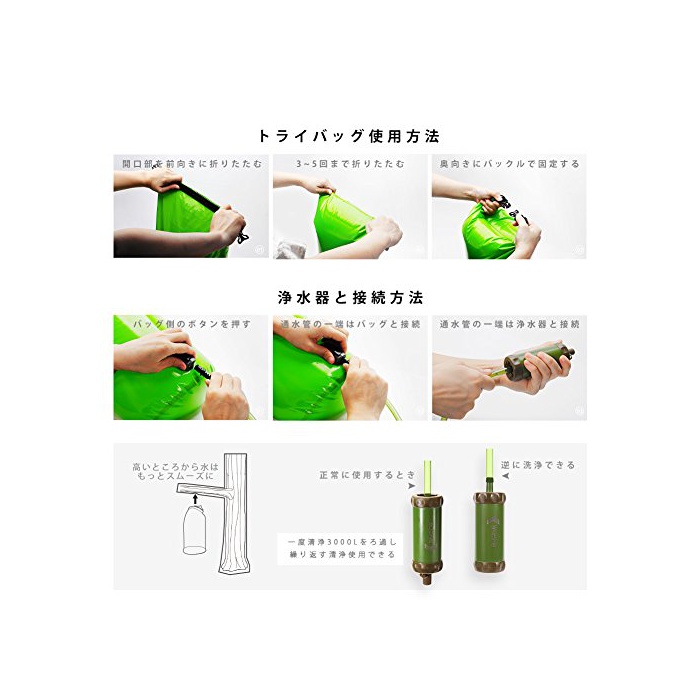 강에 낚시,바다에 헤엄치고, 캠프,등산 등의 아웃도어 하는 시,그런 때에 이것 있으면 편리!목구멍이 마른 때정수기에 강의 수를 세정 할 수 있는,직접적으로 마셔 가능,방수 백으로서 사용도에 옵니다.만일의 경우 낚시찌 돌아가고 사용 가능!