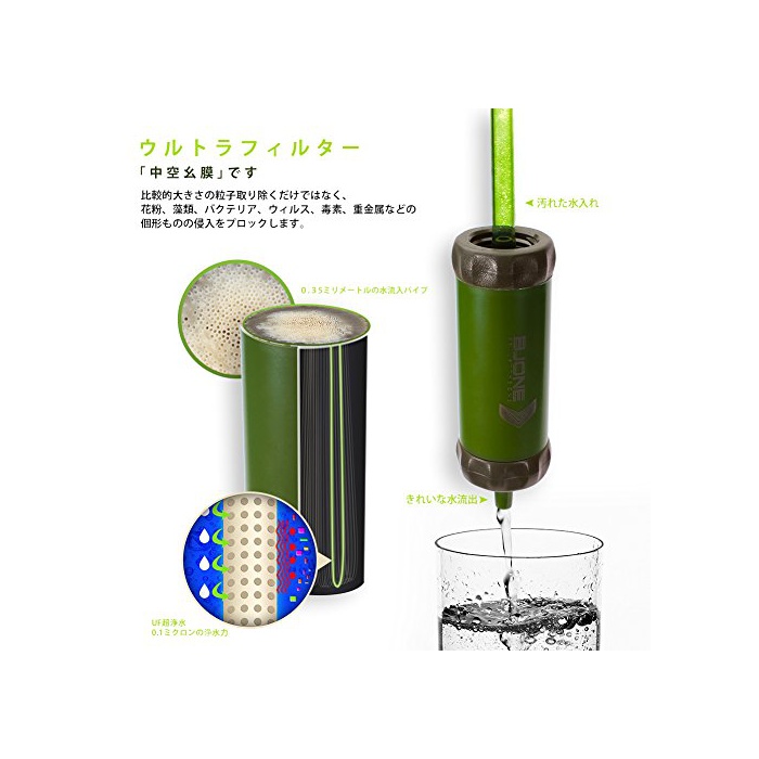 ☆수를 안전하게!오염 물질의 99.9999%를 제거.UF초 정수0.01미크론의수력으로,비교적 크기의 입자 없애는 만이 아니고, 화분,해초류,박테리아,바이러스,독소,중금속 등의 개형태 대부분 침입을 프로《구》한다.장거리 종주에 휴목욕 재계를 다 썼 것 선택.