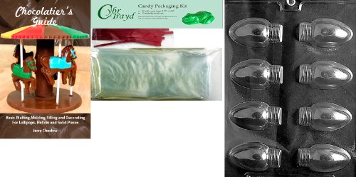 Cybrtrayd Christmas Lights Chocolate Mold with Chocolatier's Bundle of 25 Cello Bags, 25 Red Twist Ties and Chocolatier's Guide