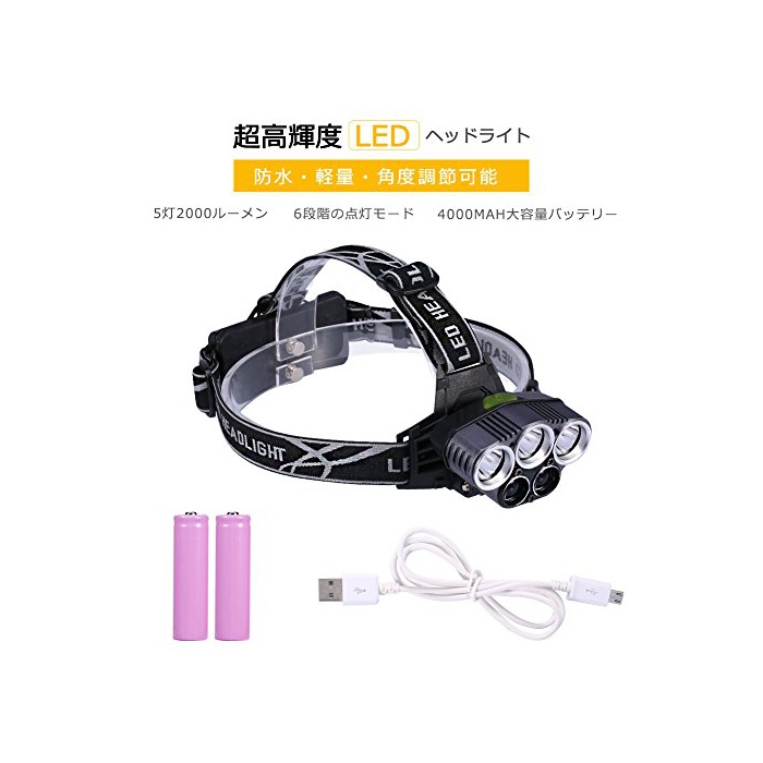 원본상품명: LED ヘッドライト ヘッドランプ 5 2000ルメン 2017新しい 超高輝度 防水 登山 アウトドア 夜釣り 防災用