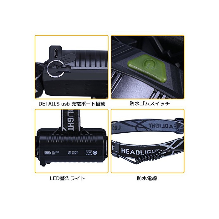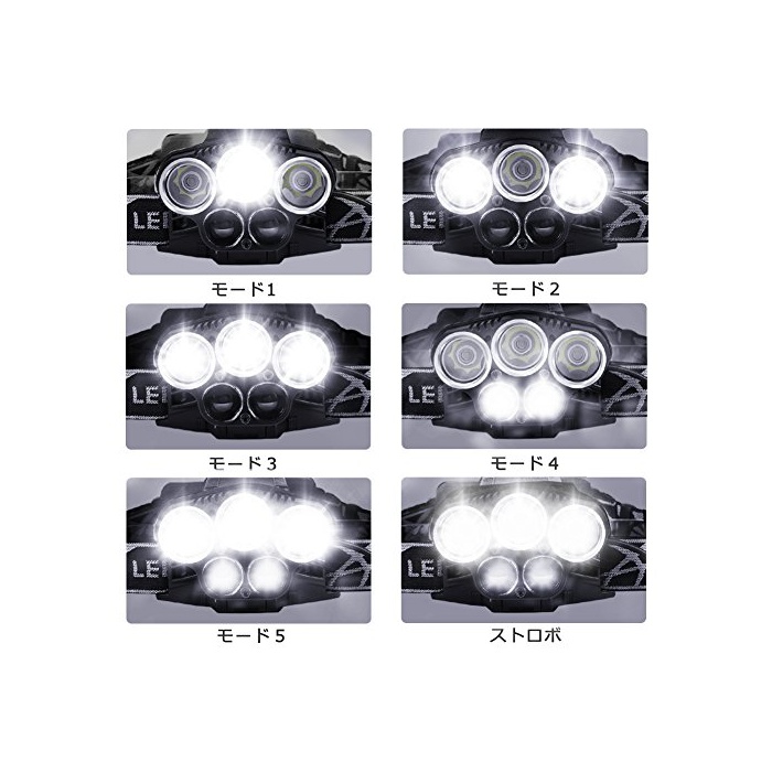 초밝기:밝은 비밀은 대규모 기업의 LED를 채용합니다.2017년 헤드라이트 광원3 * T6팁(칩)+ 2 * COB팁(칩),2000루멘초 밝기 발군의 헤드 램프(5등)입니다.하이에서도 로우에서도 충분히 밝고, 아웃도어나 작업 등에 안성마춤의 아이템입니다.