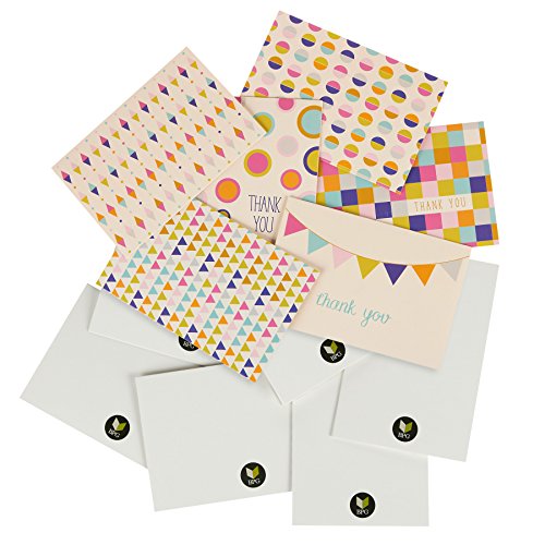 Thank You Greeting Cards - Unique Retro Geometric Design -Bulk Box Set - Includes 48 Cards and Envelopes - 4 x 6 Inches