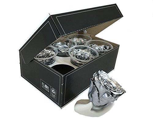 Preserved roses 6 pack extra large head roses metalized color Silver