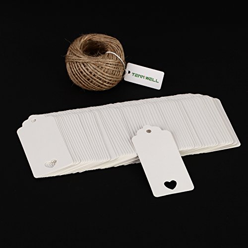 Tenn Well Kraft Paper Tags, 100pcs Thank You Gift Tags Bonbonniere Tags with 100 Feet Natural Jute Twine String for Thanksgiving Tags and Christmas Decoration Tags (White)