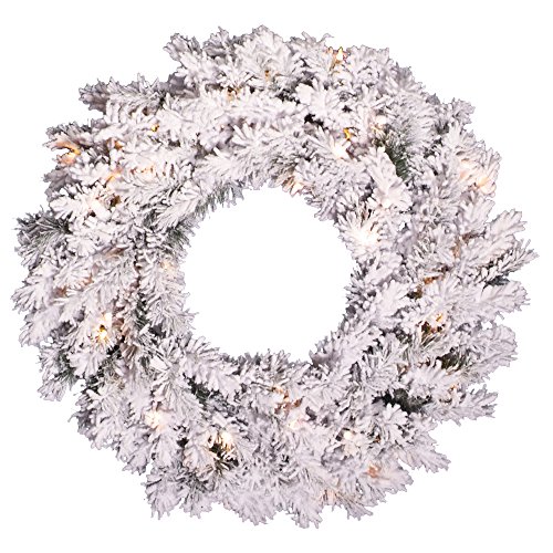 Vickerman Pre-Lit Flocked Alaskan Pine Artificial Christmas Wreath with Clear Dura Lights, 36"
