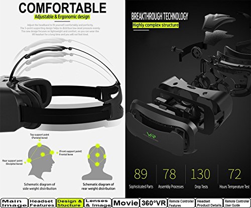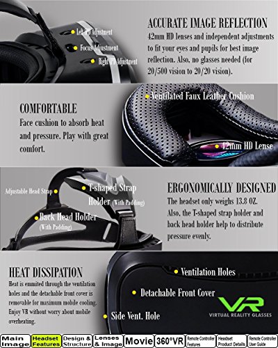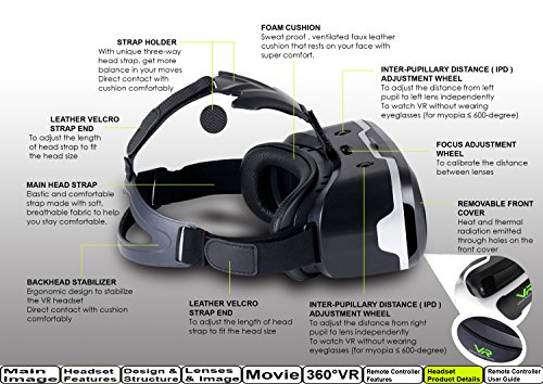 -. Feature : ⭐⭐⭐⭐⭐ LIGHT, COMFORTABLE & ERGONOMIC DESIGN : JW Lifestyle VR headset is light which is designed for extended wearing. Ergonomic design with sweat-proofed ventilated faux leather face foam cushion that rests on your face with comfort support for long time wearing. Adjustable head strap is made of breathable fabric which is light in weight and comfort-fit. T-shaped strap holder and back head holder is attached with cushion pads for pressure reduction purpose and comfortable wearing feeling / ⭐⭐⭐⭐⭐ CLEAR AND SHAPE IMAGE, NO GLASSES NEEDED FOR MYOPIA : Both Inter pupillary distance ( IPD ) and Focal distance ( FD ) are adjustable to expand the viewing angle and match focal distance perfectly and unilateral myopic alignment for reduced distortion to bring you the best 3D immersive and enjoyable experience. No glasses needed for myopia (nearsightedness) of 20/500 to 20/20 vision. / ⭐⭐⭐⭐⭐ ALMOST WORKS WITH ALL MOBILES : JW Lifestyle VR headset work with smartphones and mobile devices such as iPhone 5 / 5c / 5s / 6 / 6 plus / 7 / 7 Plus , Samsung Galaxy S5 / S6 / S7 / S8 / Note 4 / Note 5 / Edge, and other 4" - 6" smartphones ( iOS / Android ) like HTC Motorola LG Google & Sony mobiles to bring you a best immersive visual reality experience in 3D / ⭐⭐⭐⭐⭐ MOBILE COOLING DESIGN: Magnetic attached front cover is removed easily for better mobile cooling, greatly enhance the heat dissipation effect for long time use. VR headset is also usable while your smartphone is charging. Heat is also dissipated through the small vent holes on the headset front cover / ⭐⭐⭐⭐⭐ ENHANCED VISUAL EXPERIENCE: High precision biggest 42mm HD resin lenses for high definition anti radiation and anti blue light purpose. Polarized calibrated and anti fogging technology more immersive with larger field of view (120° FOV) and reduced window effect. Perfectly calibrated lenses with tons of Apple and Google VR apps turn your mobile into a VR zone with high light transmittance for superior and unmatched VR , movies , 360° movies , gaming and panoramic photos experience