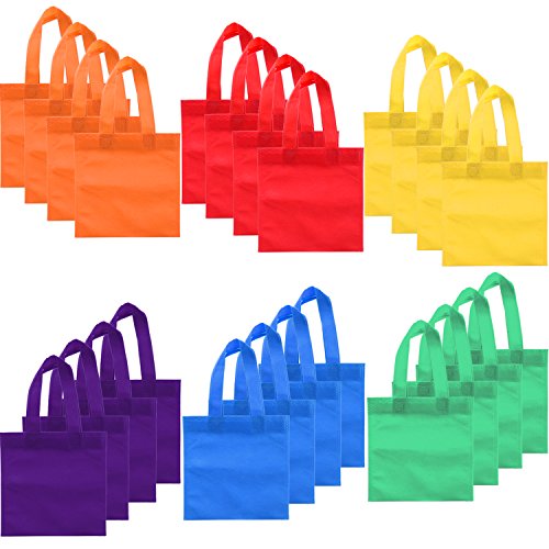 Party Bags Gift Tote Bag with Handles 24 Pack 6 Colors Non-Woven Fabric, 8 by 8 Inches