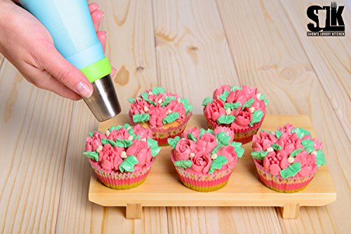 - ✅ VALUE4MONEY - EVERYTHING YOU NEED IN ONE PACKAGE: includes TONS of bonuses: A leaf tip, 3-color coupler, single-coupler, 5 cleaning brushes, 40 disposable pastry bags, silicon bag, 5 silicon cub-cake cups, plastic scissors and a printed flower chart!