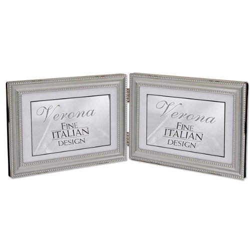 Lawrence Frames Hinged Double (Horizontal) Metal Picture Frame Pewter Finish with Delicate Beading, 4 by 6-Inch