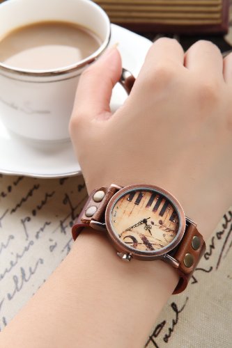 -. Title : Vintage Piano Music Watch Brown Genuine Leather Vintage Classic Watch,Watch Gift