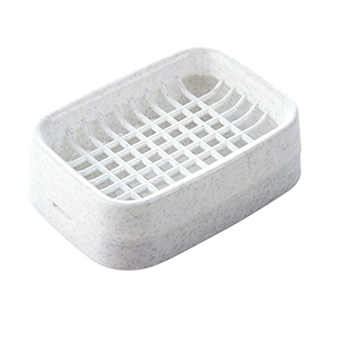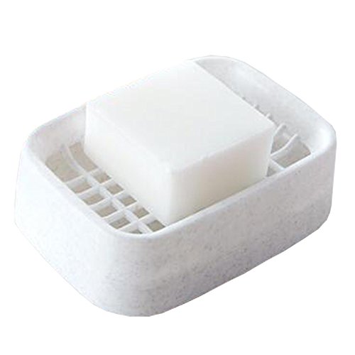 TuuTyss Large Plastic Double Gridding Draining Soap Dish Box,Rectangle Soap Holder Case White