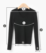 尺码 ①衣长 ②胸围 ③肩宽 ④袖长 ⑤下摆围 ⑥袖口围