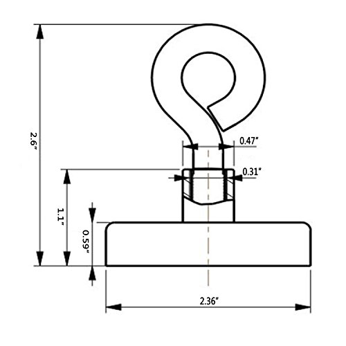 265 LBS Strong Pulling Force Round Neodymium Fishing Magnet - Super Powerful and Great for Magnet Fishing, 2.36" Diameter and 0.6" Thickness