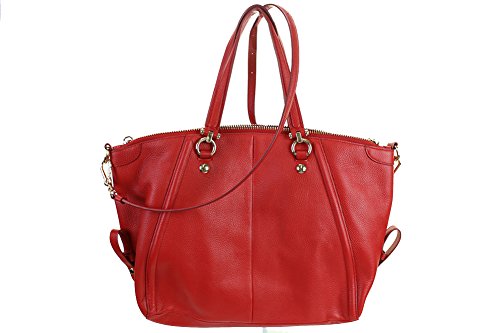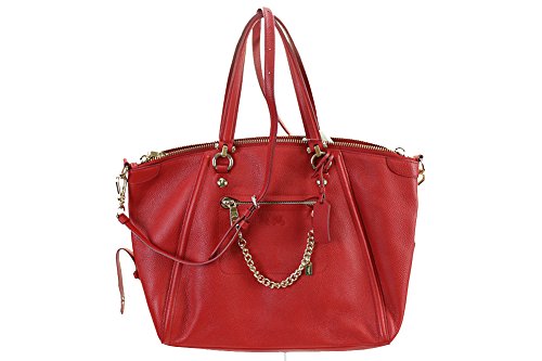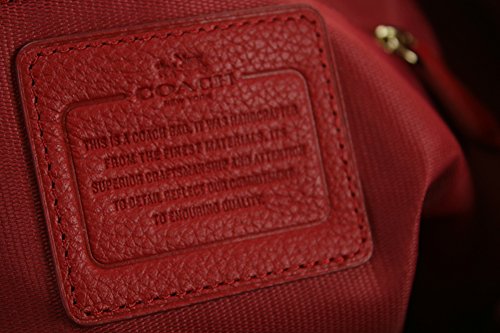 • Genuine pebbled leather in red with light gold hardware