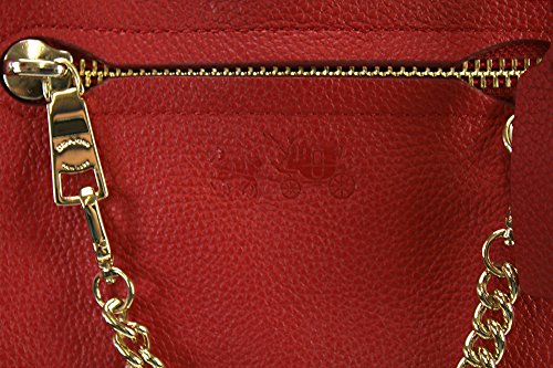 COACH PEBBLED LEATHER PRAIRIE SATCHEL WITH CHAIN CONVERTIBLE HANDBAG 34362 RED