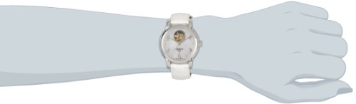 -. Feature : Automatic movement / Mother-Of-Pearl open dial / White leather strap / Deployment clasp / Water resistant to 99 feet (30 M): withstands rain and splashes of water, but not showering or submersion