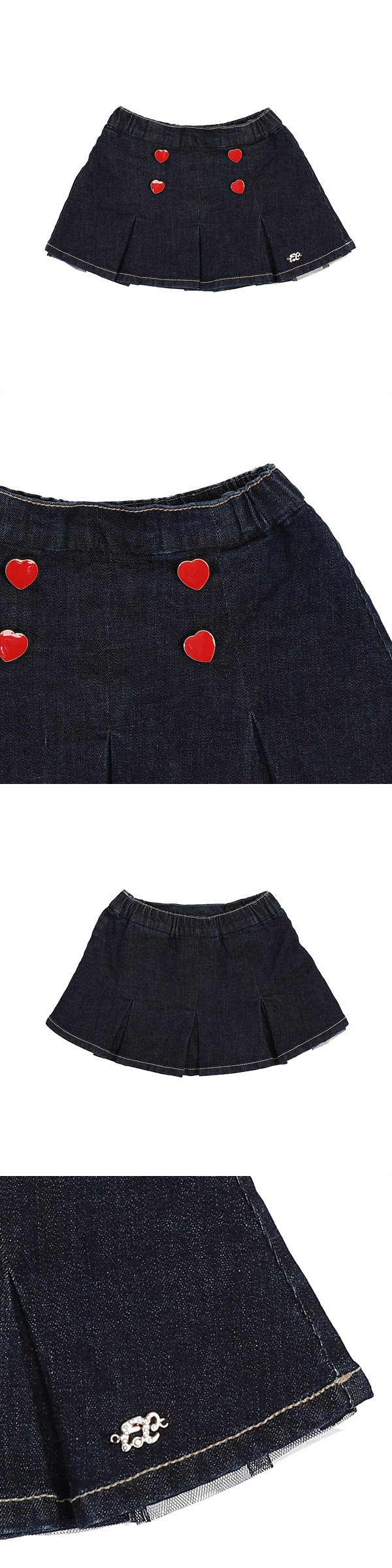 앞에 레드 하트 장식단추가 멋스러운 느낌을 주며, 주름잡혀 라인이 세련되었습니다.