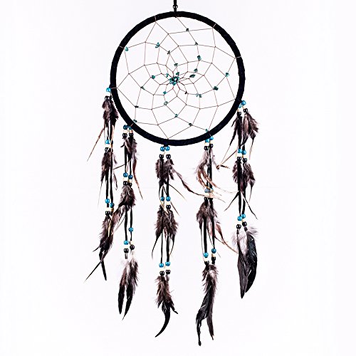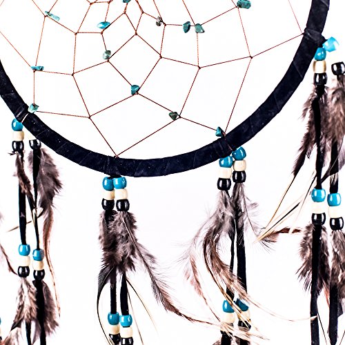 Caught Dreams Dream Catcher ~ Black Suedette with Turquoise Stones 8.5" Diameter & 21" Long!