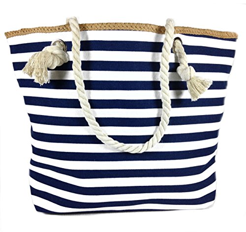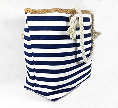 -. Title : Banded Striped Beach Town Tote Bag with Rope Handles
