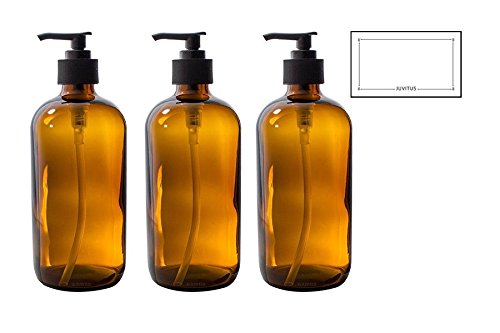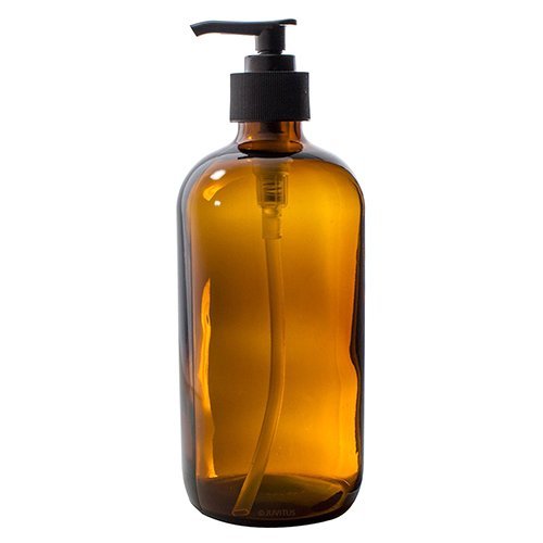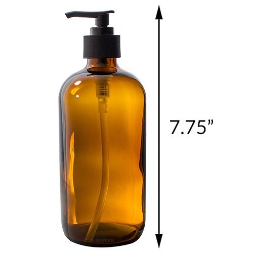 16 oz Amber Boston Round Thick Glass Pump Bottle + Label (3 pack)