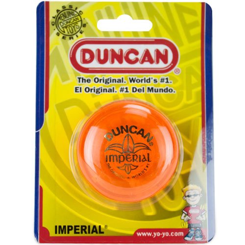 Studio : Duncan Publisher : Duncan Binding : Toy Product Description If you enjoy the feel of a classic yo-yo, you will love the Duncan Imperial. First introduced in 1954, this yo-yo features a center-weighted design which makes it perfect for looping tricks. Made from durable plastic, the Imperial is perfect for any yo-yo enthusiast regardless of skill level. Featuring a fixed steel axle and a narrow string gap, each yo-yo measures approximately 2 3/4 inches in diameter. This item is recommended for ages 6 and up. Colors will vary. 0