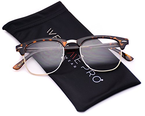 -. Title : Vintage Inspired Classic Half Frame Clubmaster Horn Rimmed Clear Lens Glasses
