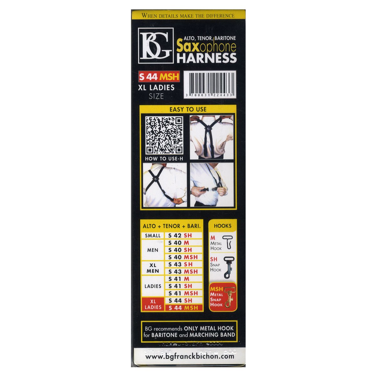 BG S44MSH XL Saxophones Woman s Harness for Alto and Tenor and Baritone Saxophone with Metal Snap Hook