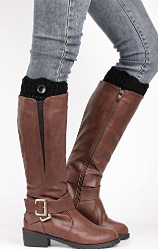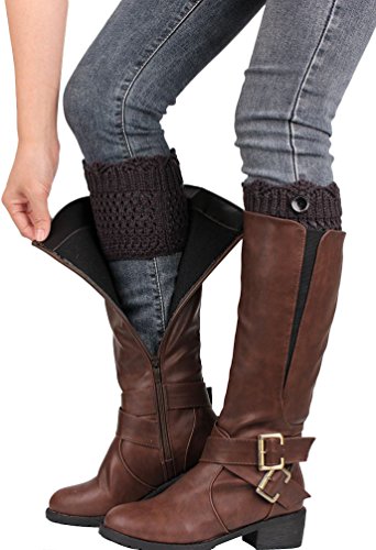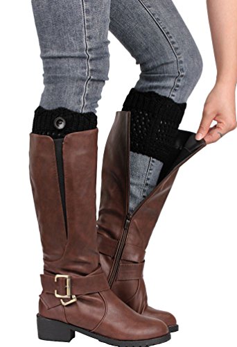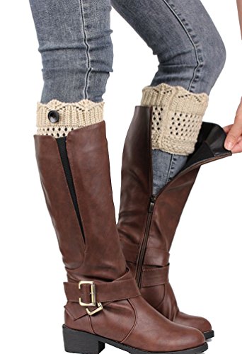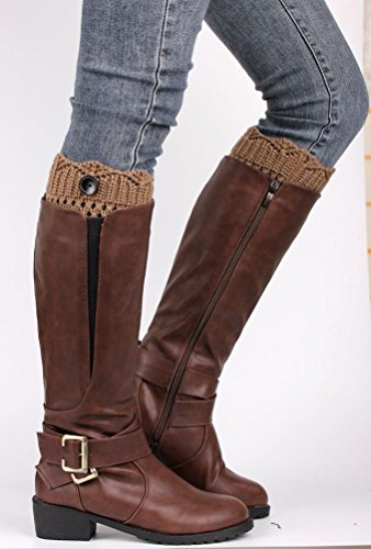 -. Title : UwantC Winter Hollow Button Leg Warmers Boot Socks Knitted Crochet Topper Cuff