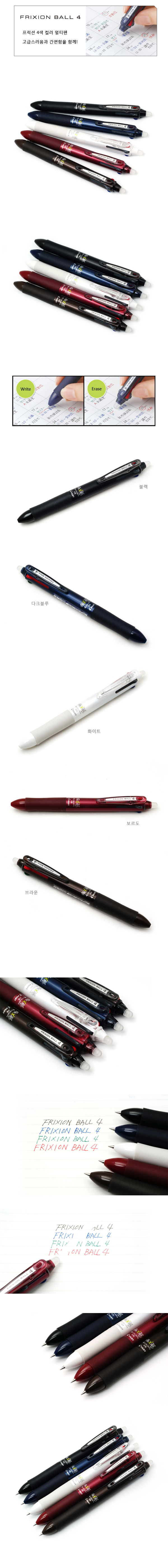 리프트그립을 채용하여 더욱 안전하고 튼튼하다. 프릭션은 마찰열에 의해 지워지는 펜으로 특수고무가 펜 끝에 달려있어