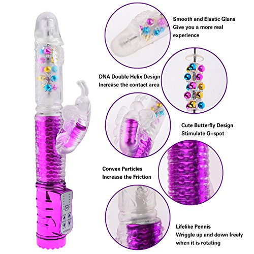 Vibrator, Oomph! 8-frequency Dual Stimulation Butterfly Massager with Colorful Ball Female Masturbation Toy Av Vibes Rotating Dildos - Purple