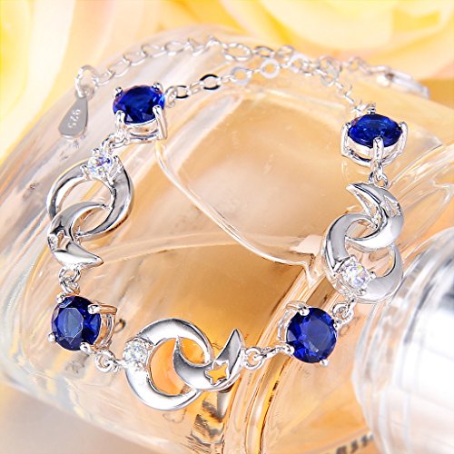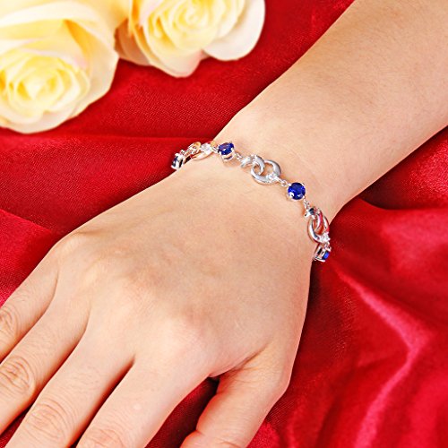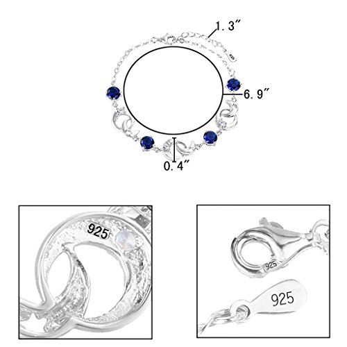 CZ Color: Sapphire Color; Adjustable Bracelet Length: 6.9in-8.1in, Bracelet Width: 0.4in; Total weight: 7g
