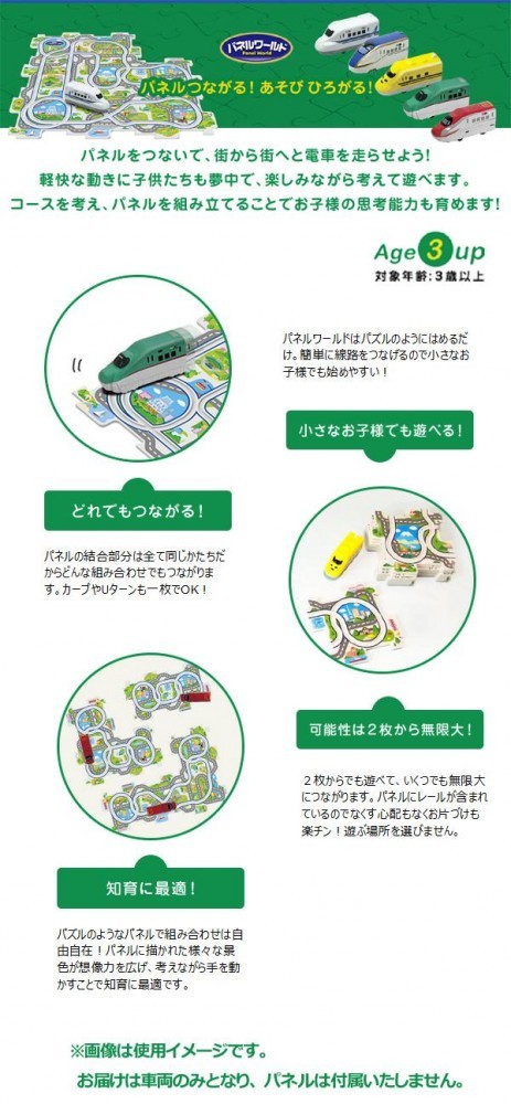 別売りパネルと一緒遊べる、パネルワールド用の車両です。遊びが更に広がります!!