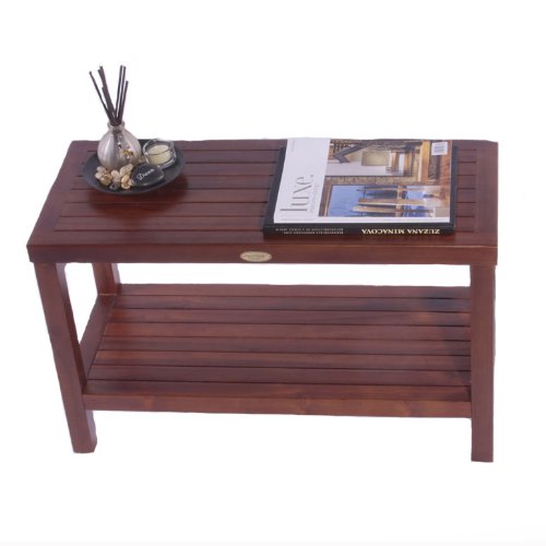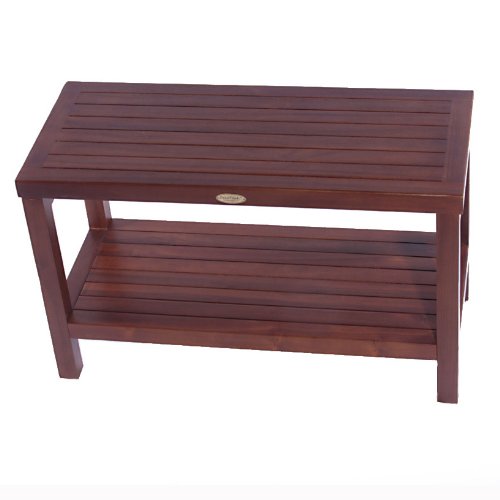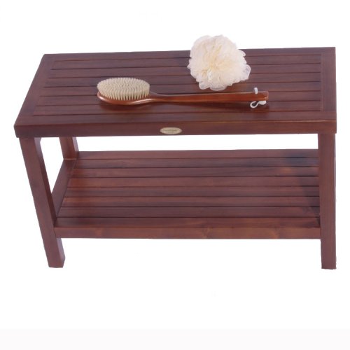 Classic 30" Teak Shower Bench With Shelf- ADJUSTABLE HEIGHT FOOT PADS- Shower Bench for Shower, Bath, Bathroom