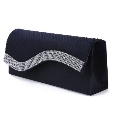 -. Feature : Edle Satin Clutch mit Faltenwurf und dezentem Strass Besatz auf der Front / Verschluss:Magnetverschluss / Fächer:geräumiges Innenfach,handyfach / Abnehmbarer lange Ketten:120cm / Abmessungen:ca.27x10x5cm